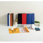 ポケットの開口部が外向きなので書類・クリアーホルダーの出し入れがしやすく、フラップ付なので抜け落ちを防ぎます。