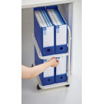 コンパクトな設計ながら、ボックスファイルが4個置けます。(※棚板取り付け位置:3段目)