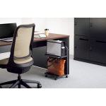 フリーアドレスタイプのデスクでの使用に便利なラック。社内移動用バッグや私物が収納でき、机上がすっきり。 |