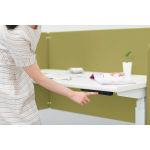 【充分な昇降ストローク】天板高さが670〜1250mmまで昇降します。個人の体格差や使用時の姿勢に合わせて調整が可能です。降下時には、天板高さ720mmで自動停止します。