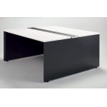 ●中間脚:スチール・粉体塗装(ホワイト)・アジャスター付 ●天板:スチール・メラミン化粧板・26mm厚・ABS樹脂エッジ ●幕板兼用フレーム:スチール・粉体塗装(ホワイト・ブラック) ●配線カバー:スチール・メラミン焼付塗装(シルバー) |