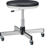 ●脚部:スチール・クロームメッキ ●張材:ビニールレザー張り[BK-SLMDII24](抗菌・防汚・耐アルコール・耐次亜塩素酸仕様) ●クッション:モールドウレタン ●キャスター:φ50mmゴム単輪・ブレーキング仕様 |