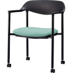 ●キャスター脚 ●張材:布張り(ポリエステル) ●クッション:ウレタンフォーム ●脚部:φ25.4mmスチールパイプ・粉体塗装 ●背・肘部:PP樹脂成型品 ●キャスター:φ40mmナイロン双輪(ブラック) ● 平積み積載数:3脚 |