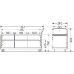 ●W580×D1655×H900mm・25.8kg ●フレーム:φ25.4(ベースフレーム:50×30)mmスチールパイプ・粉体塗装 ●脚部:φ100mmキャスター4個(うちストッパー付自在キャスター2個・固定キャスター2個) |