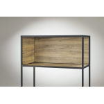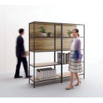 木目調のパネルにより、カジュアルな空間を演出します。1段単位で任意の段に取りつけでき、視界を調整できます。
