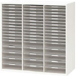 ●W900×D450×H900mm・42.5kg ●引出し内寸法:浅型W269×D365×H30mm・深型W269×D365×H69mm ●本体: スチール・粉体塗装(ホワイト) ●鍵付(オープン型・トレー型・多目的型・マガジンラック型を除く) |
