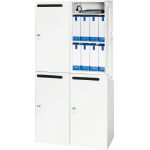 ●4人用 ●下置専用 ●プッシュ錠 ●W900×D450×H1720mm・63.3kg ●内寸法:W415×D413×H819mm ●棚板8枚付 ●付属品:名刺差し4個 ●90度開口扉 ●本体:スチール・粉体塗装 ●鍵付(オープン型・トレー型・多目的棚型・フリーボックス型・マガジンラック型を除く) |