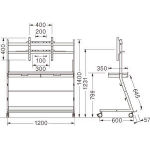 ●Lタイプ ●対応ディスプレイ:ボード4枚収納可能 50インチ以下(質量30kg×1まで)・取付穴対応:VESA100-400 ●本体:スチール・粉体塗装(ブラック) ●本体寸法:幅1200×奥行600×高さ1400mm・26kg(MSP-MBS-L)、幅1200×奥行600×高さ1400mm・26.7kg(MSP-MDBS-L)、幅700×奥行450×高さ1400mm・16kg(MSP-MBS-S) ●キャスター:φ75mmナイロン双輪4個(2個ストッパー付) |