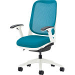 【水平位置】一般チェアーの標準位置です。資料の閲覧や、タブレット操作に適しています。(※スイングロックレバーを操作し、水平位置で、スイング動作をロックできます。)