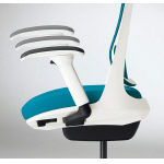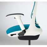 【前傾位置】シート部が、前方に5°まで傾きます。キーボード作業や筆記作業などでも、骨盤を立たせて背骨のS字カーブを保ち、ワーカーの前かがみ姿勢による、腹部の圧迫や猫背姿勢を回避します。