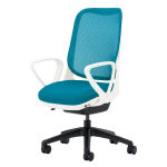 【水平位置】一般チェアーの標準位置です。資料の閲覧や、タブレット操作に適しています。(※スイングロックレバーを操作し、水平位置で、スイング動作をロックできます。)