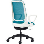 【前傾位置】シート部が、前方に5°まで傾きます。キーボード作業や筆記作業などでも、骨盤を立たせて背骨のS字カーブを保ち、ワーカーの前かがみ姿勢による、腹部の圧迫や猫背姿勢を回避します。