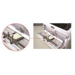 4号名刺から角2までの幅(55〜250mm)に対応した山櫻マルチホールドユニットを標準搭載。ガイドを装着することで、用紙の給紙・印刷位置精度が大幅に向上し、名刺印刷を安心してご利用できます。