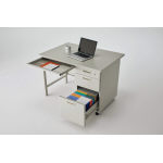 ●付属品:ペントレーPTR-8・1個、横仕切板PS-13-BK・1枚、PS-14-BK・1枚付 ●天板: スチール・メラミン化粧板・前後ポストフォーム加工・側面ABS樹脂エッジ・30mm厚 ●本体: スチール・粉体塗装(ライトグレー)・アジャスター付 ●袖引出し: オールロック錠 |