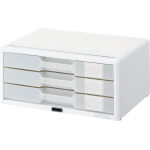 デスクまわりが明るくなる、爽やかなオールホワイトカラーで、樹脂製引出しに施錠機能が付いたカギ付レターケースです。1つのカギで全段の施解錠ができます。 |