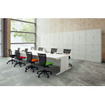 ●パネル脚タイプ ●中央引出し:ラッチ機能付 ●下段引出しは転倒防止機構付ロングストローク仕様 ●天板:スチール・メラミン化粧板・前面ポストフォーム加工・側面ABS樹脂エッジ・30mm厚・配線カバー(スチール・メラミン焼付塗装(ピュアホワイト)、オレフィン樹脂) ●中央引出し:ラッチ機能付 ●本体:スチール・粉体塗装(ホワイト) ●アジャスター付 ●L脚ベース:ABS樹脂カバー付(L字脚タイプのみ) ●袖引出し:ラッチ機能付・オールロック錠(施解錠表示・内筒交換仕様)・下段引出しは転倒防止機構付ロングストローク仕様 ●幕板取付高:床上195mm・220mm |