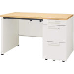 ●パネル脚タイプ ●中央引出し:ラッチ機能付 ●下段引出しは転倒防止機構付ロングストローク仕様 ●天板:スチール・メラミン化粧板・前面ポストフォーム加工・側面ABS樹脂エッジ・30mm厚・配線カバー(スチール・メラミン焼付塗装(ピュアホワイト)、オレフィン樹脂) ●中央引出し:ラッチ機能付 ●本体:スチール・粉体塗装(ホワイト) ●アジャスター付 ●L脚ベース:ABS樹脂カバー付(L字脚タイプのみ) ●袖引出し:ラッチ機能付・オールロック錠(施解錠表示・内筒交換仕様)・下段引出しは転倒防止機構付ロングストローク仕様 ●幕板取付高:床上195mm・220mm |