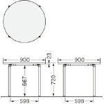 ●天板:木製・メラミン化粧板・23mm厚・ソフトエッジ ●脚部:φ38.1mmスチールパイプ・メラミン焼付塗装(シルバー)・アジャスター付 ●脚受部:アルミダイキャスト・メラミン焼付塗装(シルバー)・ABS樹脂 |