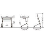 ●天板:木製・メラミン化粧板・ポリオレフィン樹脂エッジ・18mm ●脚部支柱:50×26mmスチールパイプ・メラミン焼付塗装(シルバー) ●脚部ベース:アルミダイキャスト・粉体塗装(シルバー)・φ60mmナイロン双輪キャスター4個(2個ストッパー付)・アジャスト機構(調整幅:約10mm) ●棚:スチール丸パイプ・メラミン焼付塗装(シルバー) ●折りたたみ機構:天板跳ね上げ式 ●幕板:ABS樹脂成型品 |