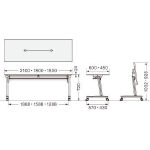 ●天板:木製・メラミン化粧板・24mm厚・ABS樹脂エッジ ●脚部支柱:アルミ押出し成型品・粉体塗装(シルバー) ●脚部ベース:アルミダイキャスト・粉体塗装(シルバー)φ60mmナイロン双輪キャスター4個(2個リフトロックキャスター)・アジャスト機構(調整幅:約10mm) ●棚:スチール丸パイプ・メラミン焼付塗装(シルバー) ●折りたたみ機構:天板跳ね上げ式 |