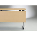 ●天板:木製・メラミン化粧板・24mm厚・ABS樹脂エッジ ●脚部支柱:アルミ押出し成型品・粉体塗装(シルバー) ●脚部ベース:アルミダイキャスト・粉体塗装(シルバー)φ60mmナイロン双輪キャスター4個(2個リフトロックキャスター)・アジャスト機構(調整幅:約10mm) ●棚:スチール丸パイプ・メラミン焼付塗装(シルバー) ●折りたたみ機構:天板跳ね上げ式 ●幕板:木製・メラミン化粧板・17mm厚・ABS樹脂エッジ |