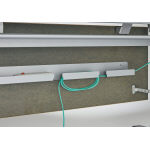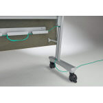 【配線機能】幕板内側の配線トレーには、OAタップやHUB等も収納可能。支柱内側のスリット(カバー付)を通して、床まですっきりと処理することができ足元をコードが邪魔することもありません。