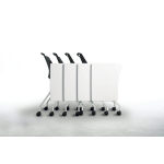 【スライドスタッキングで省スペース収納】座を跳ね上げて、カートのように重ねて、コンパクトに収納できます。(スタックピッチ:160mm)