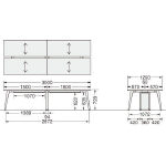 ●天板:木製・メラミン化粧板・35mm厚・ABS樹脂エッジ ●センター脚:スチール・メラミン焼付塗装(ブラック)・アジャスター付 ●エンド脚:アルミダイキャスト・ポリッシュ仕上・アジャスター付 ●ビーム:スチールパイプ・メラミン焼付塗装(ブラック) ●配線トレー:スチール・メラミン焼付塗装(ブラック) |