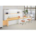 ホワイト&木目のカラーリングで、さわやかな空間を演出するビジネスカウンター。 |