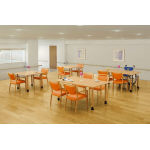 ●天板:木製・メラミン化粧板・オレフィンエッジ・30mm厚 ●脚部:φ60.5mmスチールパイプ(木目シート仕上げ) ●アジャスター脚 |