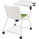 左利きの人にも右利きの人にも使いやすい大型メモ台仕様のミーティングチェアー。使いやすいメモ台の動きで活発なミーティングをサポートします。 |