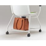 ●上張:布張り(ポリエステル布)●背・座シェル:PP樹脂成型品(ホワイト) ●クッション:ウレタンフォーム ●脚部:φ25.4mmスチールパイプ・粉体塗装(ホワイト) ●網棚:φ5mmスチールパイプ・粉体塗装(ホワイト) ●メモ台:PEブロー成型品(ホワイト) ●キャスター:φ50mmナイロン双輪(ブラック) |