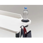 ペン・ドリンクホルダー/小袋フック:移動の際もペットボトルが倒れにくいカップホルダー。レジ袋や手さげ袋などを引っ掛けることのできるフックも備えています。(内径φ70mm)