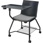 左利きの人にも右利きの人にも使いやすい大型メモ台仕様のミーティングチェアー。出入りがしやすく、使いやすいメモ台の動きで活発なミーティングをサポートします。 |