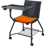 左利きの人にも右利きの人にも使いやすい大型メモ台仕様のミーティングチェアー。出入りがしやすく、使いやすいメモ台の動きで活発なミーティングをサポートします。 |