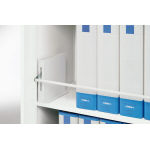 一定の地震の揺れを感知すると、自動的に落下防止バーが全段上昇し書籍の落下を防止します。 |