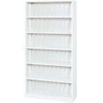 ●W900×D350×H1770mm・64.0kg ●内寸法:W858×D349×H263mm ●本体:スチール・粉体塗装(ホワイト)・アジャスター付 ●仕切板54枚付 |