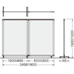 ●(上部)スチロール樹脂〔2.5mm厚・シボ付半透明〕/(下部)両面再生ポリエステル布張り〔芯材:パーティクルボード〕 ●奥行:425mm ●フレーム:アルミ・粉体塗装/ABS樹脂(ホワイト) ●パネル厚:30mm ●脚部:スチールパイプ・粉体塗装/PP樹脂カバー付(ホワイト) ●キャスター:φ40mmナイロン双輪(ストッパー付/1連:2個、2連:3個、3連:4個) |