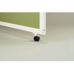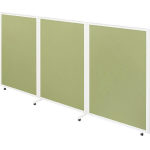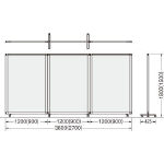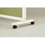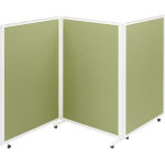 ●(上部)スチロール樹脂〔2.5mm厚・シボ付半透明〕/(下部)両面再生ポリエステル布張り〔芯材:パーティクルボード〕 ●奥行:425mm ●フレーム:アルミ・粉体塗装/ABS樹脂(ホワイト) ●パネル厚:30mm ●脚部:スチールパイプ・粉体塗装/PP樹脂カバー付(ホワイト) ●キャスター:φ40mmナイロン双輪(ストッパー付/1連:2個、2連:3個、3連:4個) |