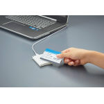 USBカードリーダーをパソコンに接続し、IDMまたはUIDコードを入力したい部分にカーソルを合わせ、ICカードを本体にかざすだけで、コードが自動的に入力されます。