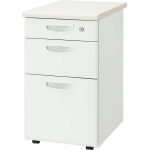 ●天板:スチール・メラミン化粧板・前後面ポストフォーム加工・側面ABS樹脂エッジ・30mm厚 ●本体:スチール・粉体塗装(ホワイト)・アジャスター付 ●引出し:ラッチ機能付・オールロック錠 ※袖引出しはすべて単レールです。 |