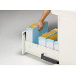 ●折りたたんだ状態から両端を押すと底の部分が起き上がる、ワンタッチ組立式です。 ●机の引出しにA4サイズを横向きに収納できます。 ●サイドに、持ち運びに便利な持ち手があります。 |
