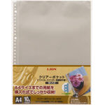 ●クリアポケット(クリアーファイル・バインダー追加用ポケット) ●横入式・両面ポケット ●規格:A4判 ●とじ穴:30穴および80mm2穴・4穴兼用穴 ●マットタイプPPポケット(ベースはグレーシート) ●とじ穴部は補強シールされています。 ●1冊10枚入 |