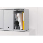 ●セキュリティボックス ●A4判縦型・ケンドン扉・W200mm ●有効内寸法:W198×D274×H326mm ●本体:スチール鋼板 ●小物仕切スタンド1個付 ●カギ2本付 ●デスクワークで使用するファイルや携帯端末等を施錠保管するタワー型ボックス。扉は開閉のわずらわしさを考慮して、開放時に邪魔にならないケンドン扉(収納式)タイプです。 ●背面にPC持出し防止ロックが取り付けできるセキュリティホール(3×7mm)付。PC持出し防止ロックを使うことでデスク等に固定できます。 ●キャビネットに並べて設置することで、スペースを固定しないノンテリトリアルオフィスでのパーソナルロッカーとしても便利です。 ●A4判S型ファイルと共にB5サイズモバイルPCが収納できます。仕切スタンド(PB-20Rのみ装備)を使うことで、CDなど記録メディアもすっきり収納できます。 |