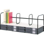 ●引出し付本立 ●引出し:A4判横型2列2段・ポリスチレン樹脂製 ●引出し内寸法:W315×D220×H37mm ●サポーター2本付(スライド可動式) |