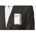 衝撃に強い再生ポリカーボネート樹脂製。バッチタイプの縦型IDカード名札。 |