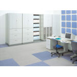 平行移動書庫は、前後のスキ間が少なく、3列型でも省スペースで大量の資料や書類を収納できます。また、動きがスムーズで、検索性にも優れています。