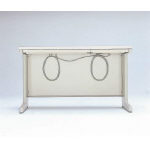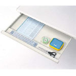 ●平机 ●天板:スチール・メラミン化粧板(アイボリー)・30mm厚・コードホール2個付 ●本体:スチール・粉体塗装(アイボリー) ●脚部アジャスター付 ●配線ボックス取り付け可能 ◎中央引出し内寸法は左から(1)W343×D307×H36mm(2)W654×D307×H36mm(3)W343×D307×H36mmの順 |