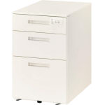 ●引出し3段 ●本体:スチール・粉体塗装(ホワイト) ●取っ手:ABS樹脂 ●ストッパー付低床自在キャスター仕様 ●引出し: ラッチ機構・オールロック錠(ダイヤル錠仕様) ※下段引出しは転倒防止機構 |