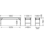 ●折りたたみ厚:94mm ●天板:木製・メラミン化粧板・ポリオレフィン樹脂エッジ・30mm厚 ●脚部:27mm角アルミパイプ・メラミン焼付塗装・アジャスター付・バネ式折りたたみ機構 |